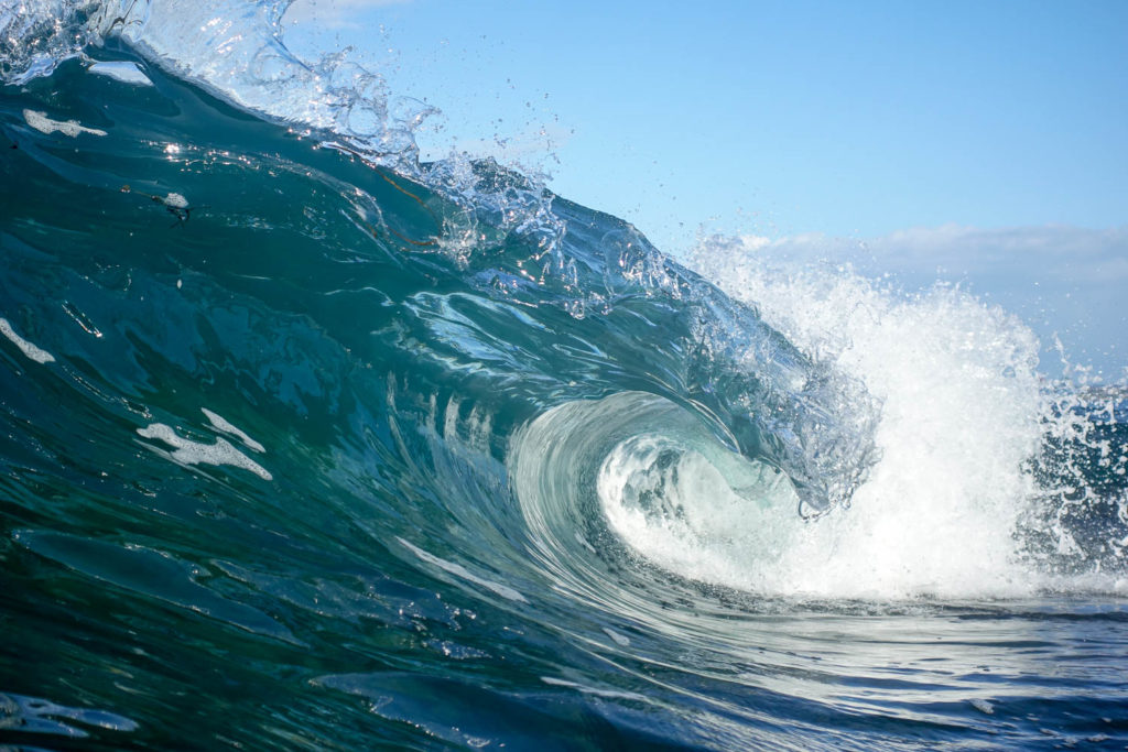 There aren’t many surf photographs shot in a housing with a really long focal length. Usually if you’re a long way from the action in a channel then you can shoot from a boat and don’t need a housing. Sometimes you do need it, and sometimes it’s great for getting some creative and different angles, but I’d say if you’re just starting out, 70mm is long enough for 95% of surf photos.