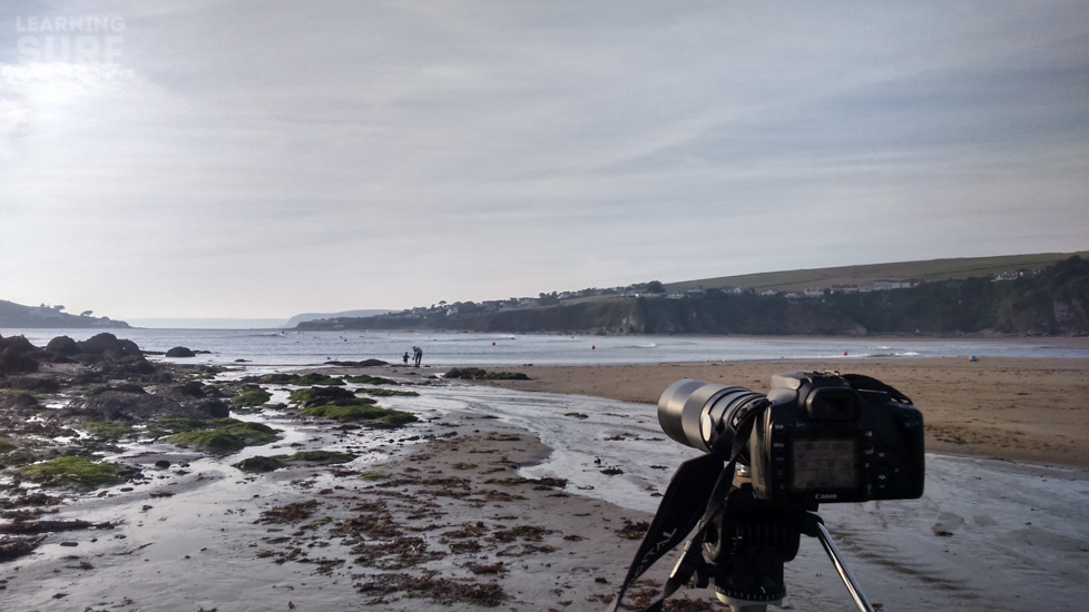 So I caught a couple of waves then came in and got the rig set-up, the massive, all metal 300mm lens weighs a lot and has a tripod collar on it so you can mount it to a tripod easily, my Manfrotto tripod legs and cheap fluid head actually cost more than the camera and lens combo and they’re definitely not an expensive option (more details on what I recommend for a land based set-up coming soon).