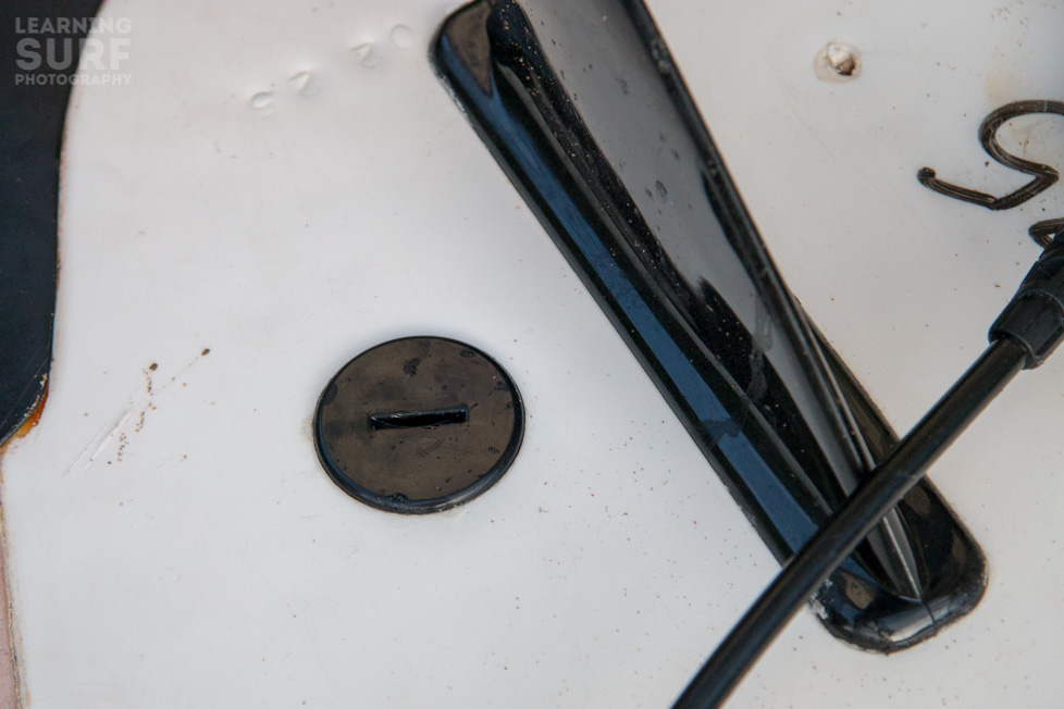 The Mike Stewart Pro Plug – I’ve used this one on my 9 foot soft board as a tail cam, and while my positioning was a bit off it held fast through some lengthy rides and occasional wipe outs and did the job really well. The design is simple and effective, it’s a basic bodyboard leash plug style plastic threaded screw which you tighten with a coin that goes in the bottom of the board and one piece of moulded plastic which incorporates a GoPro compatible clip on the top.
